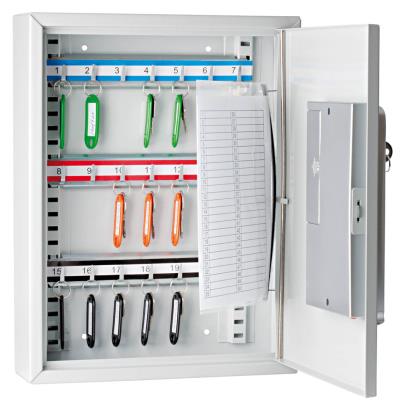 code de sécurité & serrure standard, plat, en tôle d'acier recouvert de poudre, 3 barres à crochets réglables, numéroté registre pr ls clés amovibles, matériel de fixation, 2 clés numérotées, 4x 1,5V AA mignon, gris clair, dimensions: (L)300 x (P)95 x (H)450mm (102 63237)