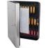 en acier, avec face avant en acier inxydable, crochets fixes jet de clé dans la boîte possible sur le côté, serrure à clé incl. 2 clés, livré avec un tableau de numéro et matériel de fixation, dimensions: (L)240 x (P)60 x (H)300 mm (8018567)