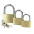 3 cadenas en laiton avec 3 clés chacun, dans les tailles: 25 / 30 / 40 mm, couleur : argent/or (M413-03)