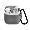 Écouteurs sans fil avec boîtier de charge, et housse en silicone grise.