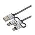 Micro-USB/USB-C, multi câble de chargement, pour connecter les appareils Apple Lightning, USB-C et Micro-USB à un port USB-A, extrêmement résistant grâce à une gaine en nylon, couleur : noir/argent, longueur : 1,0 m (10407)