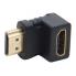 Coupleur HDMI mâle / femelle coudé à 90°. Son orientation emmène le cordon vers le haut