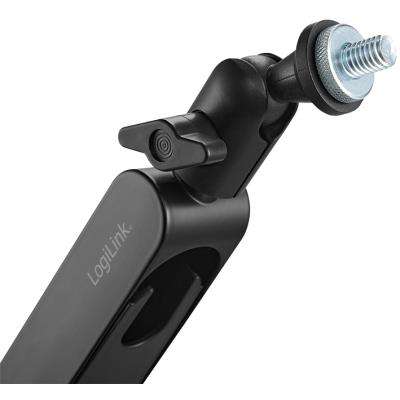 entièrement orientable, pour la plupart des microphones vocaux & dynamiques (filetages universels 3,8' & 5,8'), pivote sur 180 degrés, avec bouton rotatif, colonnes montantes amovibles, gestion de câbles, (AA0161) capacité de charge: max. 2 kg, longueur du bras: 709 mm, hauteur: 144 - 706 mm