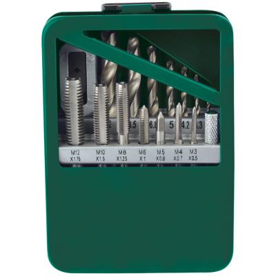 dans une caisse en métal avec fenêtre de visualisation, matériau: acier, contenu: 7x taraud (M3, M4, M5, M6, M8, M10, M12), 7x foret de carottage (2.5,3.3,4.2,5.0,6.8,8.5, 10.2), 1x tourne-à-gauche (M3-M12) (M53215)