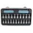 contenu: 12x insert de clés à pipe, 2x rallonge, 1x joint de cardan, 70x embout de tournevis, 1x cliquet réversible, 4x clé Allen, 1x embout magnétique, 1x poignée coulissante en T, 1x adaptateur d'embout, 1x poignée à vis, (Q25003) 21x insert de tournevis, 1x adaptateur pour douilles