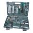 contenu: 8 x clé à fourche / 23 x douille / 1 x adaptateur pour embouts / 5 x douille, long / 2 x clé à bougies / 2 x rallonge / 2 x joint universel / 2 x cliquet / 14 x embouts / 1 x poignée / 5 x tournevis / 4 x clé Allen / 1 x pince à (29099) sertir / 25 x cosse pour câble / 1 x pince pour pompe à eau / 1 x pince universelle / 1 x testeur de lumière auto / 1 X marteau de serrurier