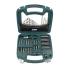 mallette en plastique avec couvercle transparent, dimensions (L)240 x (P)75 x (H)255 mm, couleur: noir / vert (M54375) 1x porte-embout magnétique, 6x douilles, 4x forets à béton, 5x mèches à bois, 1x fraise, 1x gabarit de perçage, 1x cliquet, 11x forets HSS, 32x embouts 25 mm, 12x embouts 50 mm