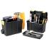 combinaison de 2 coffres avec chariot intégré, raccordement solide des deux parties inférieure et supérieure, 2 range- ments compartimentés dans le couvercle, plateau porte-outils amovible, dimensions monté : (L)465 x (P)265 x (H)620 mm (476138) dimensions utiles: (L)400 x (P)190 x (H)170 mm