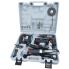 dans une malette: perceuse à percussion, scie sauteuse, ponceuse vibrante, meuleuse d'angle une main, 9x forets, 6x embouts, 1x porte-embouts, 4x tige de corindon, 2x lame de scie, 5x papier à poncer, 1x disque à dégrossir (M12555) dimensions de la malette: (L)532 x (P)442 x (H)136 mm, couleur: noir
