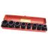 pour tournevis à choc, entraînement 3/4', dans un boîtier métallique, couleur : noir, couleur du boîtier : rouge, contenu : 22 / 24 / 26 / 27 / 29 / 32 / 36 / 38 mm (M 1517)