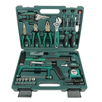 contenu: 2 x tournevis / 1 x testeur de tension / 1 x cutter avec 10 lames sécables / 22 x embouts / 1 x scie à métaux avec 6 lames / 7 x clé 6 pans / 12 x douilles / 2 x adaptateur / 1 x poignée cliquet / (29074) 1 x cisaille à câble / 2 x tournevis de précision / 2 x pince / 1 x clé à fourche / 1 x pince coupante / 1 x marteau de serrurier / 1 x mètre ruban