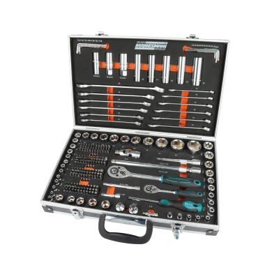 contenu : 144x forets, 1x poignée à vis magnétique, 12x clé à molette, 3x bougie d'allumage, 47x clé à douille, 4x rallonge, 2x adaptateur, 2x joint universel, 15x clé Allen, 2x cliquet réversible (M98432) dimensions : (L)455 x (P)305 x (H)110 mm