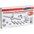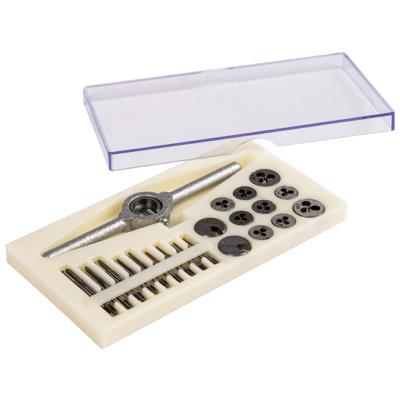 en carton, matériau: acier, couleur: argent, pour filetage métrique, coupe à droite (M53240) Contenu: 1x porte filière, 2x adaptateurs pour utilisation des tarauds, 17x tarauds, 9x filières