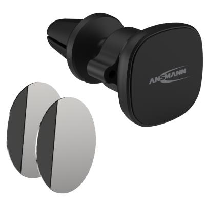pour grille d'aération, en plastique, surface caoutchoutée mate, pour smartphones & navigateurs de 300 g max., pinces caoutchoutées, articulation à rotule, orientable 360 degré incl. 2 petites plaques métalliques (1700-0159)