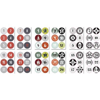 3x 4 feuilles avec 6 stickers décoratifs, chiffres: 1 - 24, pour coller sur des calendriers de l'avent personnalisés (15490)