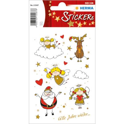 sticker en papier, en partie pailleté, motifs de Noël, contenu : 2 planches (15626)