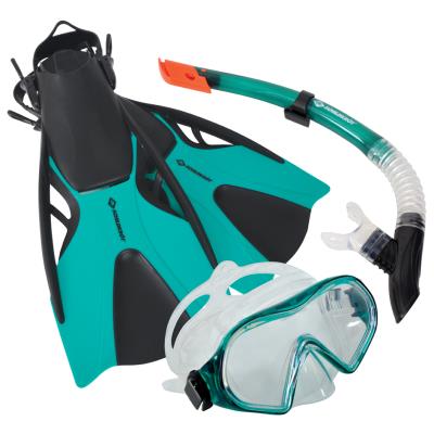 tuba: embout buccal en silicone, porte-tuba réglable, masque en verre de sécurité, corps du masque en silicone, palmes de forme anatomique, système de boucles, couleur: turquoise, contenu: tuba, masque et palmes (940003)