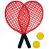 composé de 2 raquettes de beach tennis en plastique (longueur: 395 mm / largeur: 200 mm), robustes et résistan- tes aux intempéries, 2 balles en mousse jaune, dans un filet avec cordon de serrage (970130)
