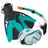 tuba: embout buccal en silicone, porte-tuba réglable, masque en verre de sécurité, corps du masque en silicone, palmes de forme anatomique, système de boucles, couleur: turquoise, contenu: tuba, masque et palmes (940003)