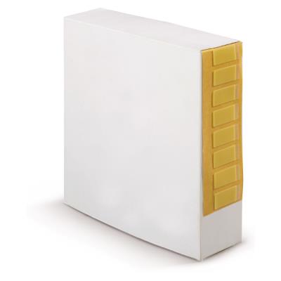 Mousse jaune souple, colle acrylique à bon pouvoir de maintien.