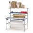 Le poste est constitué de :1 rayonnage haut équipé de 8 séparateurs amovibles+ 1 étagère métallique pour accessoires.+ 1 axe dérouleur supérieur pouvant supporter une charge de 20 kg+ 1 règle de coupe avec lame circulaire et poignée ergonomique, longueur de coupe maxi 182,5 cm+ 1 table plateau mélaminé 22 mm avec chants PVC + 1 axe dérouleur inférieur pouvant supporter une charge de 20 kg.
