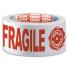 Ruban adhésif Tesa en polypro imprimé "FRAGILE" en rouge sur fond blanc. Alerte sur les précautions à prendre.