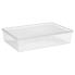 dimensions: (L)365 x (P)550 x (H)118 mm, couleur:transparent matériau: PPR, empilable, équipée d'un couvercle à clic, couvercle avec l'inscription 'Shoes' imprimée en différentes langues dans une écriture graphique (19840800) le bord du couvercle garantit une bonne stabilité et prise en main