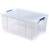 transparent incolore, en PP recyclable, résistant aux chocs, avec couvercle, empilable, fond & coins doublement renforcés poignées latérales pour la fermeture, étanche, convient à un usage alimentaire, emballé en carton (7731001) dimensions extérieures : (L)660 x (P)450 x (H)320 mm dimensions intérieures : (L)580 x (P)385 x (H)300 mm
