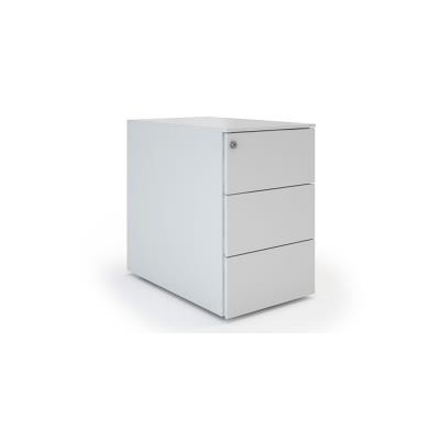 Un caisson très fonctionnel à la finition soignée et élégante avec ses roulettes masquées. Sa structure monobloc possède une finition époxy Aluminium. Les façades à prise latérale, sans poignées, concourent à donner à ce caisson petite largeur une dimension résolument moderne et élégante.