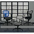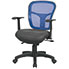 Siège basculant centré - Structure Noire - Dossier en résille bleue - Assise en Tissu nid d'abeille Noir - Accoudoirs fixes inclus - 1/5h - Garantie 3 ans.