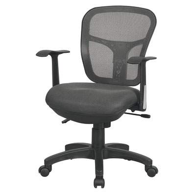 Siège basculant centré - Structure Noire - Dossier en résille grise - Assise en Tissu nid d'abeille gris - Accoudoirs fixes inclus - 1/5h - Garantie 3 ans