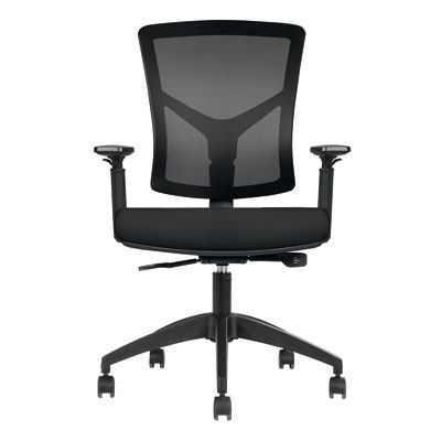 Siège synchrone 4 positions - Structure Noire - Dossier en résille Noire - Assise en Tissu Noir - Réglage automatique de la tension - Accoudoirs 1D inclus - 5/8h - Garantie 5 ans