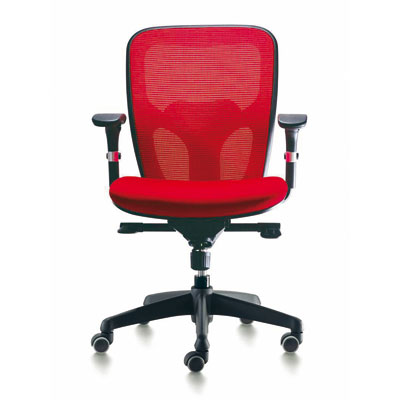 Fauteuil synchrone 5 positions - Structure Noire - Assise et dossier en résille Rouge - Accoudoirs 2D inclus - 8/12h - Garantie 5 ans