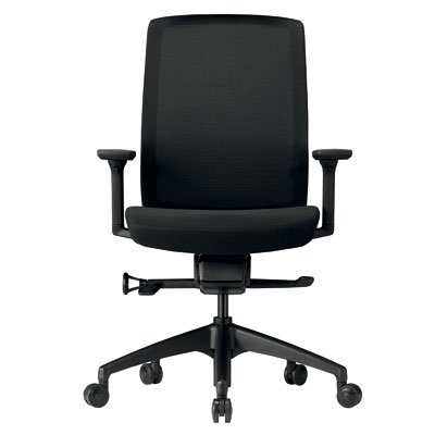 Fauteuil synchrone 4 positions - Translation d'assise - Structure Noire - Dossier résille noire - Assise Tissu Noir - 8/12h - Garantie 5 ans