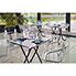 assise et dossier en lattes profilé aluminium avec rivets. Structure résistante en tube d'aluminium diamètre 25 mm épaisseur 2 mm, équipés de patins de protection.