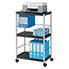 Cette desserte roulante est très pratique pour y poser tout ce dont vous avez besoin près de votre bureau. Haute, elle permet de travailler debout et elle se déplace facilement grâce à ses 4 roulettes pivotantes. Les 3 tablettes noires sont fabriquées en métal laqué pour supporter vos documents et vos objets jusqu'à 35 kg et les 2 tablettes du haut peuvent recevoir des dossiers suspendus. La structure est en tube finition gris aluminium pour un maintien parfait des tablettes et une résistance unique. Sur les 2 niveaux, des traverses chromées maintiennent les dossiers suspendus et classeurs de chaque côtés. La table d'appoint est livrée prête à monter.