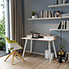 Bureau scandinave Elizey pieds métal - 120 x 60 cm - réhausse 2 tiroirs - niche de rangement- chêne naturel , blanc