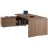 L'autre côté du plateau est soutenu par le meuble retour porteur finition noyer. Ce bloc rangement, soutenu par des pieds, se compose de différents modules. D'un côté, deux niches permettent par exemple de ranger des livres et des dossiers. De l'autre côté se trouvent deux tiroirs qui peuvent servir à stocker des papiers, des documents divers et des petites fournitures. Ces modules de rangement facilitent grandement l'organisation du manager : il dispose d'un espace de rangement de proximité dont il peut se servir sans avoir à se déplacer.