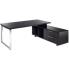 L'autre côté du plateau est soutenu par le meuble retour porteur finition frêne noir. Ce bloc rangement, soutenu par des pieds, se compose de différents modules. D'un côté, deux niches permettent par exemple de ranger des livres et des dossiers. De l'autre côté se trouvent deux tiroirs qui peuvent servir à stocker des papiers, des documents divers et des petites fournitures. Ces modules de rangement facilitent grandement l'organisation du manager : il dispose d'un espace de rangement de proximité dont il peut se servir sans avoir à se déplacer.