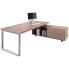 Avec ses lignes épurées et fonctionnelles, le bureau Écho et son meuble retour suspendu est également très tendance avec son plateau avec chants de finition anti-chocs ABS de 3 mm et ses larges pieds cadres en métal effet chromé. Le meuble retour porteur offre des rangements facilement accessibles. Il se compose d'une armoire latérale avec deux grands tiroirs, le premier avec serrure, et de deux niches ouvertes avec étagères. Plateau 180 cm, très grande surface de travail optimum et possibilité de compléter l'environnement de travail avec une table de réunion et des rangements coordonnés pour un aménagement complet.