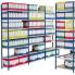 L'élément départ est composé de 2 montants et de 7 tablettes. Les montants en acier profilé 8/10 ème assurent à l'ensemble de la structure
