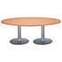 Table ovale composée de 2 plateaux arrondis en panneau de particules mélaminé, épaisseur 25 mm avec chants droits antichocs en ABS, épaisseur 2 mm. Grande résistance du plateau aux rayures avec traitement anti-reflet, conforme aux normes FCBA .