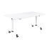 Table de réunion équipée d'un plateau rabattable et de roulettes, flexibilité et simplicité pour une utilisation optimale !Sobre, design et au style épuré, cette table rabattable vous permet de moduler facilement les espaces de vos locaux.Plateau basculant épaisseur 25 mm, finition mélaminé muni de chants droits ABS antichocs épais de 2 mm.Structure très robuste en tube métal laqué finition époxy, diamètre 60 mm. Table pliante très maniable avec ses 4 roulettes multidirectionnelles silencieuses, diamètre 75 mm avec frein.