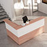 Le comptoir d'accueil Yucca est la solution idéale pour des créer des halls d'accueil contemporains à prix étudié. Ce comptoir est composé de deux modules droits qui se relient par un module d'angle. Il est d'une grande qualité grâce à ses panneaux de particules avec finition mélaminé. Les deux plateaux sont d'une épaisseur respective de 18 et 22 mm et dotés de chants antichocs en ABS d'une épaisseur de 3 mm pour une très grande solidité. Le plan de travail a des dimensions avantageuses qui permet un travail confortable et assure qu'il y a toujours assez d'espace pour tous les documents et accessoires. L'ensemble est composé d'un module d'angle 90 degrés en extrémité, et de deux modules hauts. Ces modules ont des tablettes supérieures dotées d'une surélévation pour écran d'ordinateur. Les tablettes sont équipées de trous pour faire passer les câbles et les cacher à la vue. Le comptoir a aussi une tablette basse pour ranger des documents tout en les gardant à portée de main. Enfin, les vérins réglables permettent non seulement de maintenir l'équilibre du comptoir mais aussi de régler la hauteur du comptoir pour un travail plus ergonomique. Idéal dans toute entreprise, ce comptoir Yucca assure une image professionnelle et de marque à votre hall d'entrée.