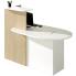 Un meuble d'accueil offrant de multiples possibilités d'utilisation !La banque d'accueil Gloom aux lignes rationnelles conjuguent en un seul élément un plan de travail, un plan de réception et des rangements. De finition bicolore, elle comporte un comptoir haut à gauche et un bureau de forme arrondie. La tablette d'accueil sert de support pour les visiteurs. Le plan de travail ergonomique L.140 cm est réalisé en panneau mélaminé bilaminé d'une épaisseur de 25 mm. La partie supérieure permet le positionnement d'un écran ordinateur de grande dimension. Un rangement est positionné sous le plan de travail composé d'une niche ouverte et d'un compartiment fermé avec une porte munie d'une serrure. Le panneau latéral est muni d'une découpe qui permet la montée de l'électrification jusqu'au plan de travail.