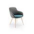 Fauteuil d'accueil Olia - tissu gris - coussin bleu - 4 pieds bois naturel