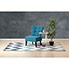 Chauffeuse d'accueil vintage, confortable et distinguée. Structure en pin massif avec piétement en hêtre noir. Assise moelleuse en mousse de densité 60 kg/m3. Revêtement en polyester non déhoussable. Dimensions : L. 59 cm x P. 49 cm x H. 82 cm. Coloris : Bleu. Garantie de 2 ans.